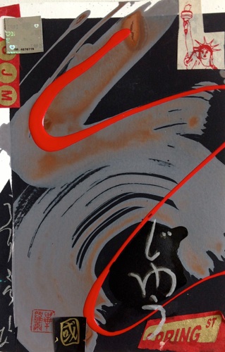 11”x14” Framed under glass sumi & acrylic/mixed media