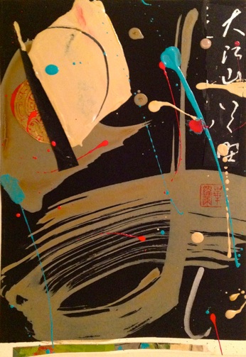 11”x14” Framed under glass sumi & acrylic/mixed media