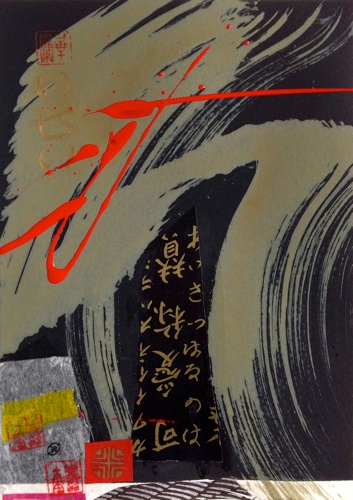 11”x14” Framed under glass sumi & acrylic/mixed media